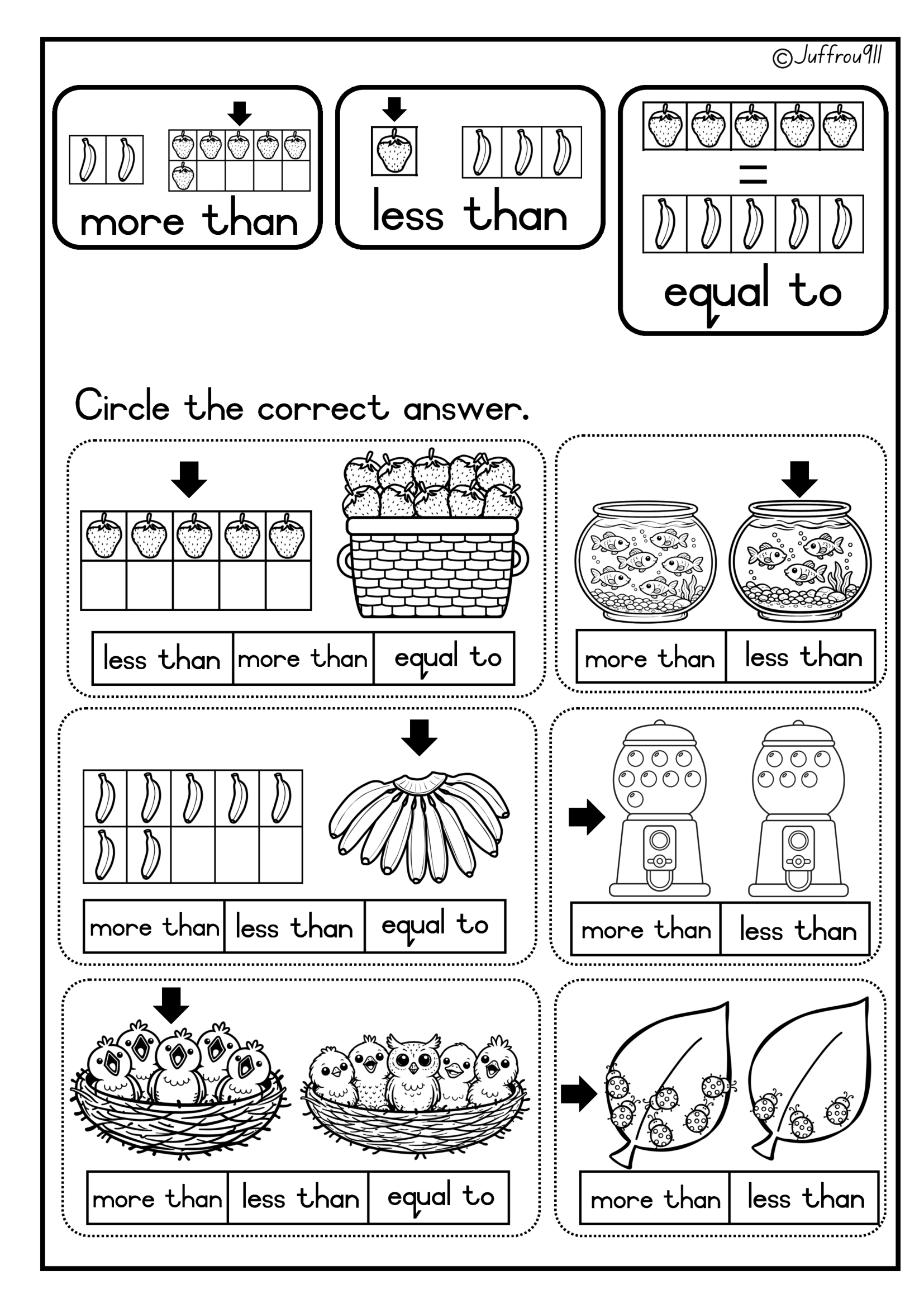 - Less than, greater than, and equal to