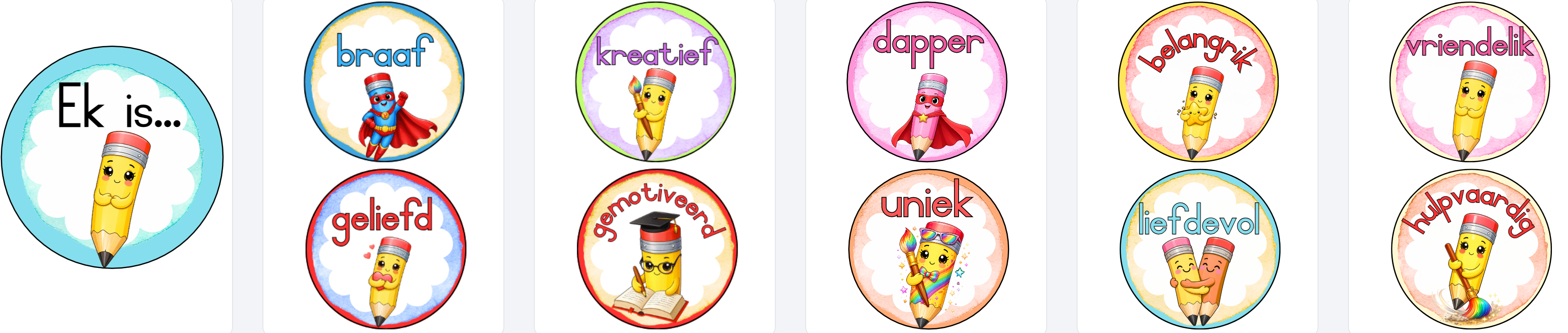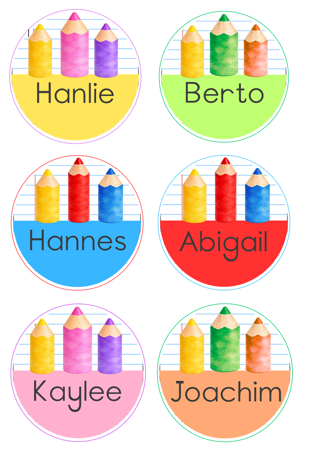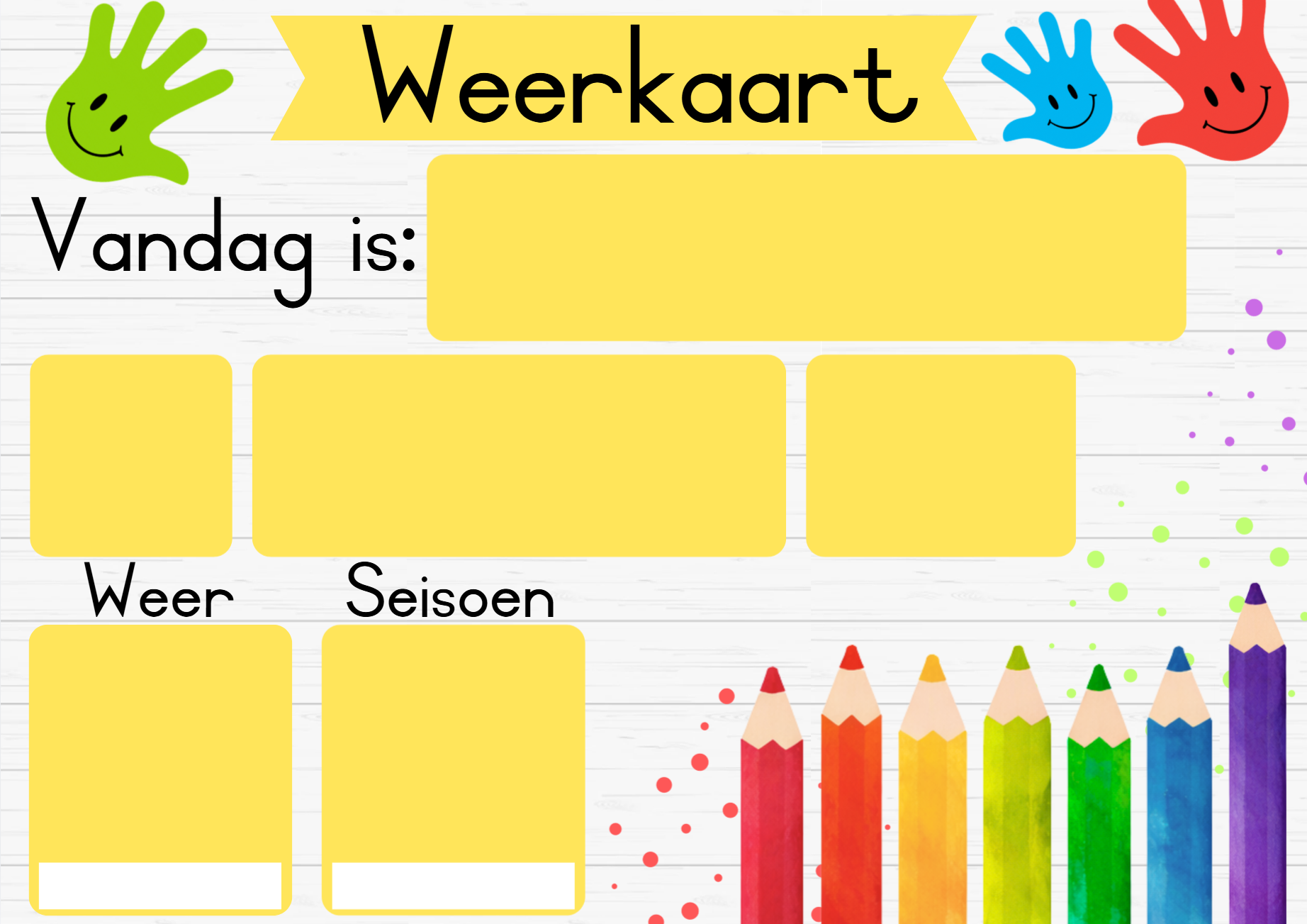 Die kleurvolle potlode en hande tema bestaan uit: