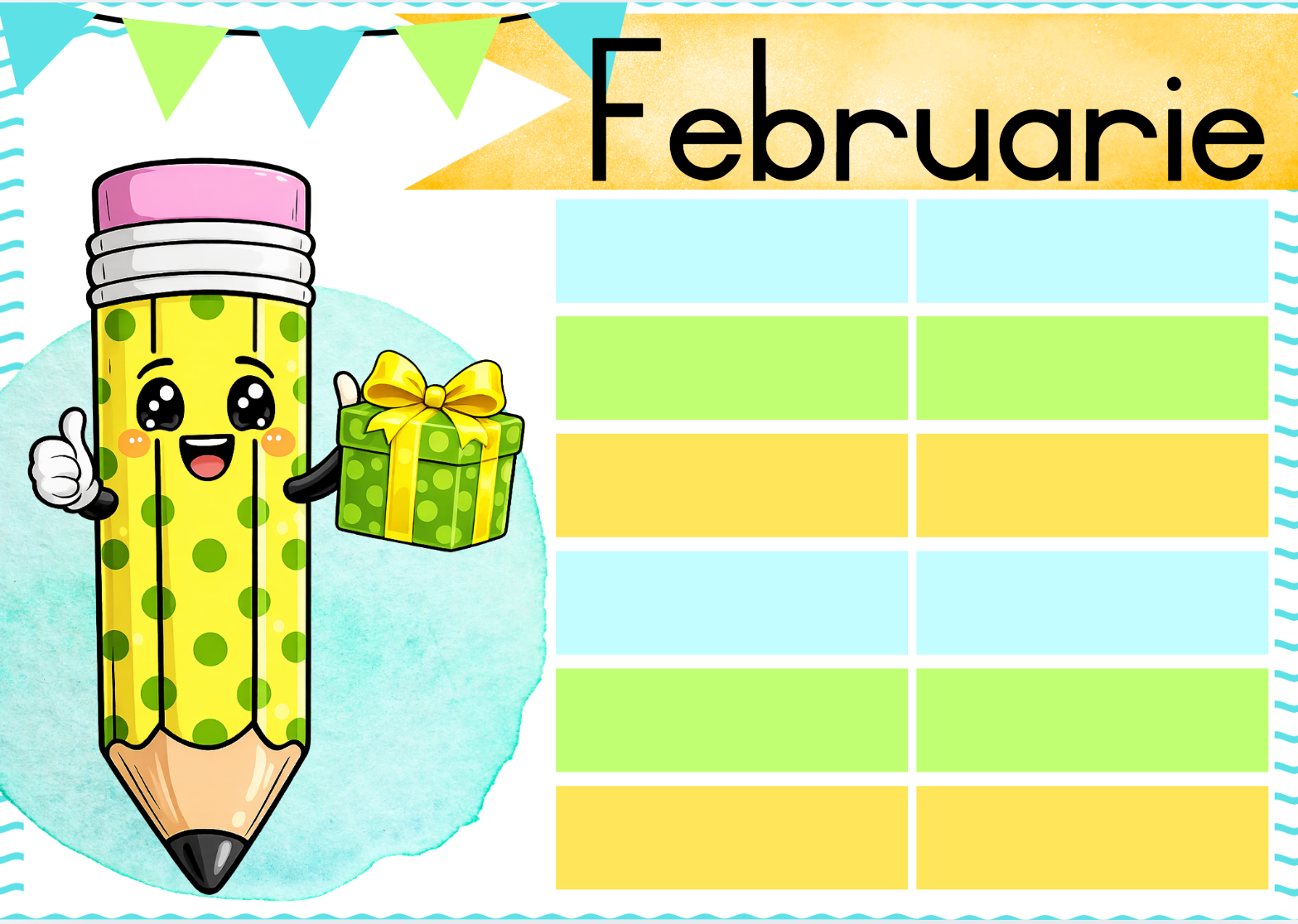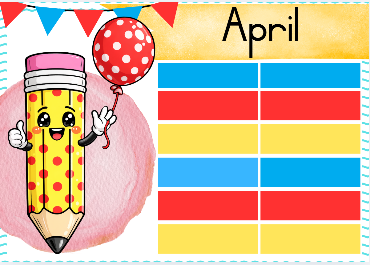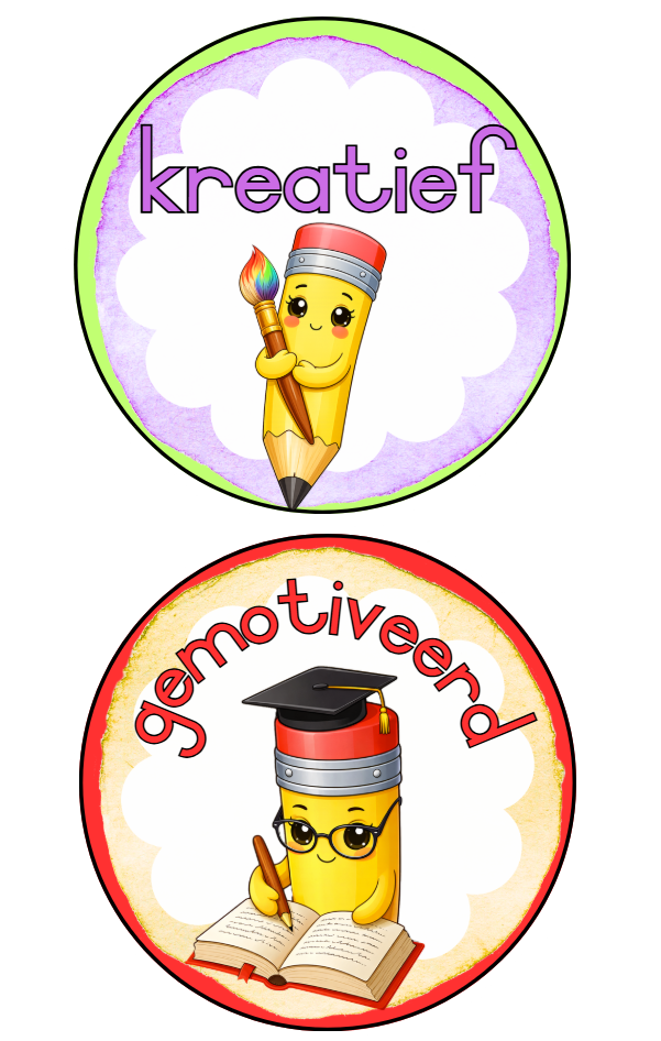 Die kleurvolle potlode en hande tema bestaan uit: