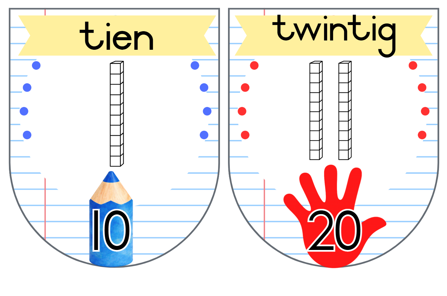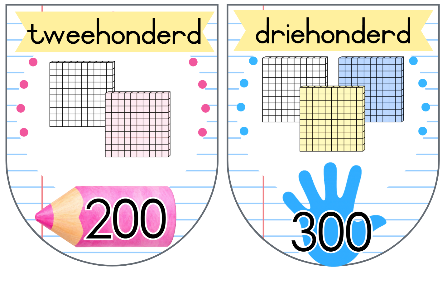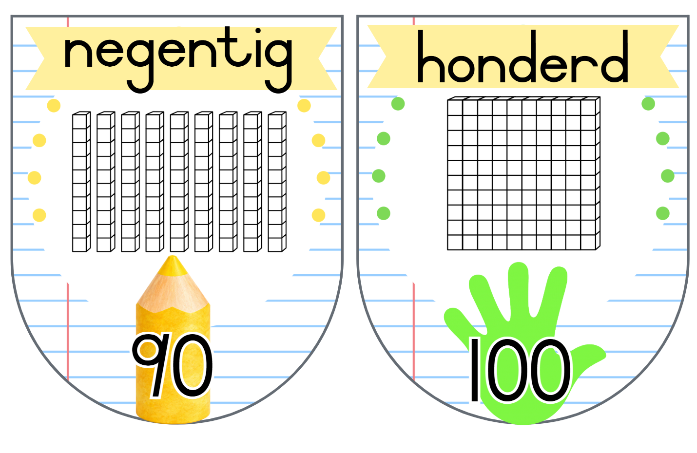 22. Vlaggies 10 tot ‘n 100 ( Tel in 10’e, 100’e tot by 1000) – 2 vlaggies op ‘n A4