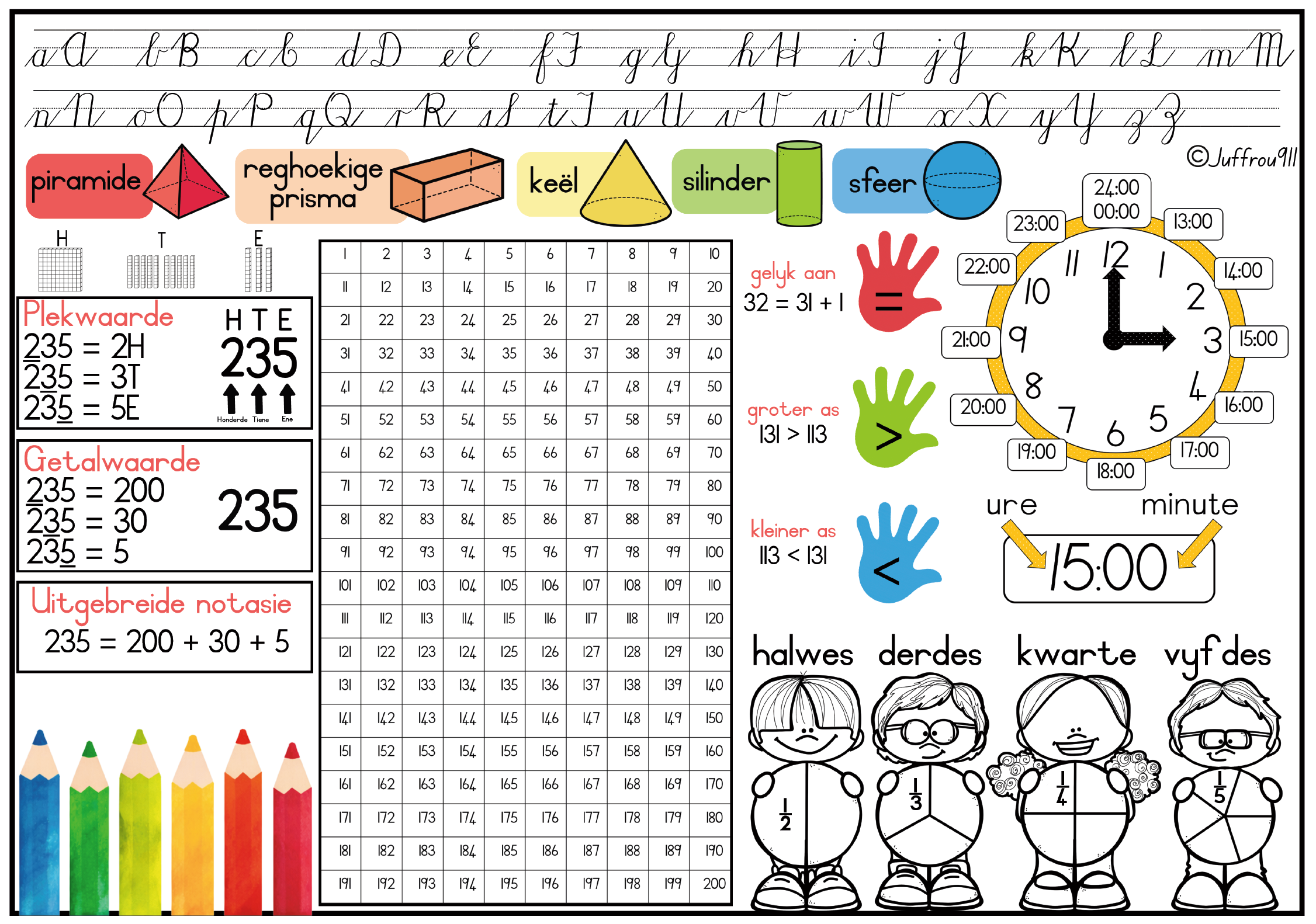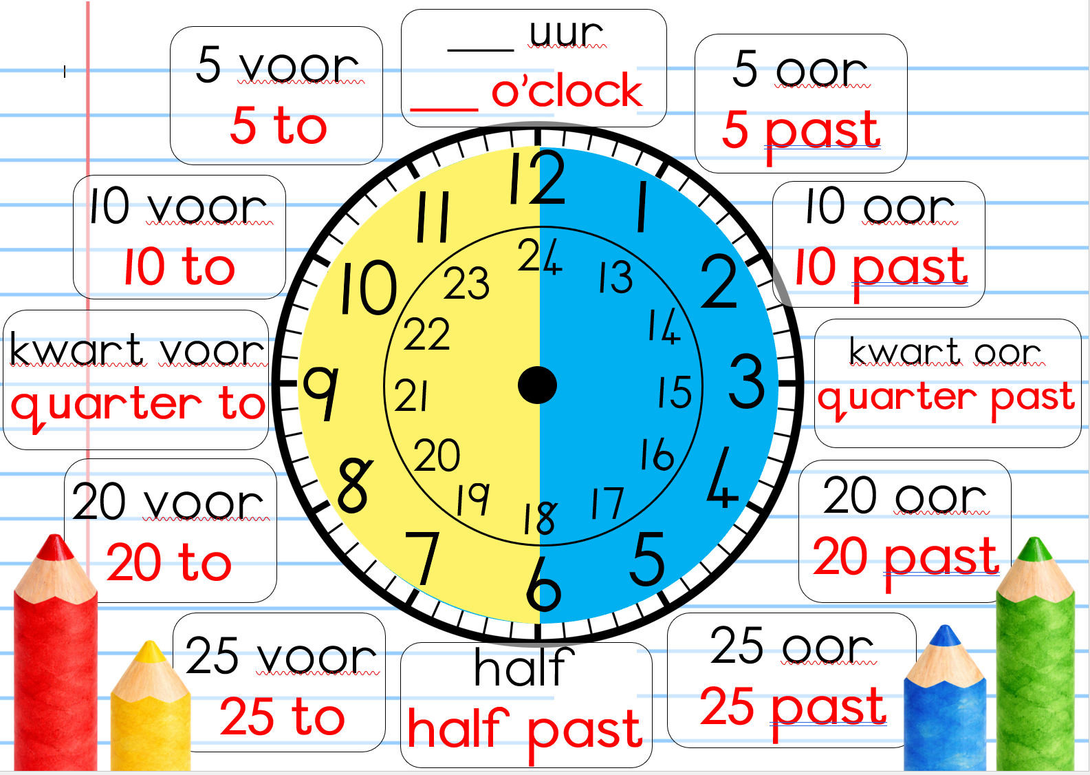 16. A3 Digitale tyd muurkaart – 24 hour clock – 24 uur horlosie